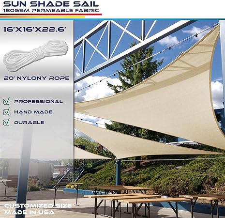 Amgo 16' x 16' x 16' beige triangle sun shade sail canopy awning, 95% uv blockage water & air permeable, commercial & residential, for patio yard pergola, 5 yrs warranty (available for custom sizes) 4.6 out of 5 stars.